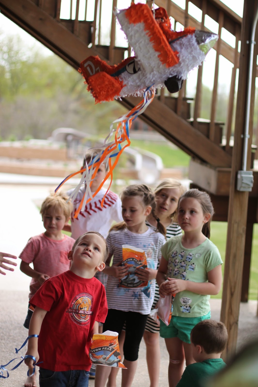 Max absolutely loves the Planes Fire and Rescue movie, and that was the theme he chose for his birthday party this year. We kept it nice and simple with just his best buddies and a couple party activities...and let the bounce house/playground/pool do most of the entertaining. :)